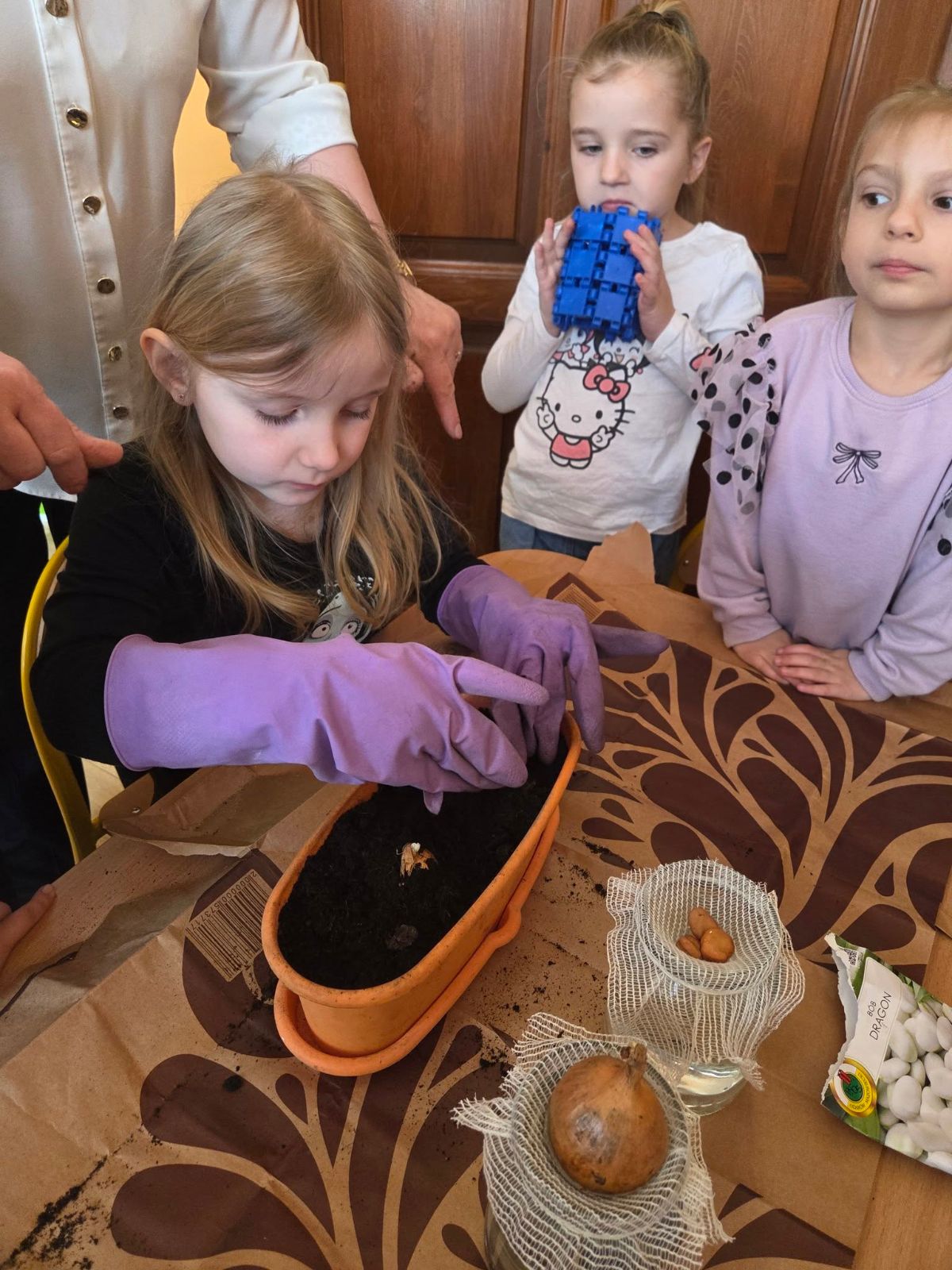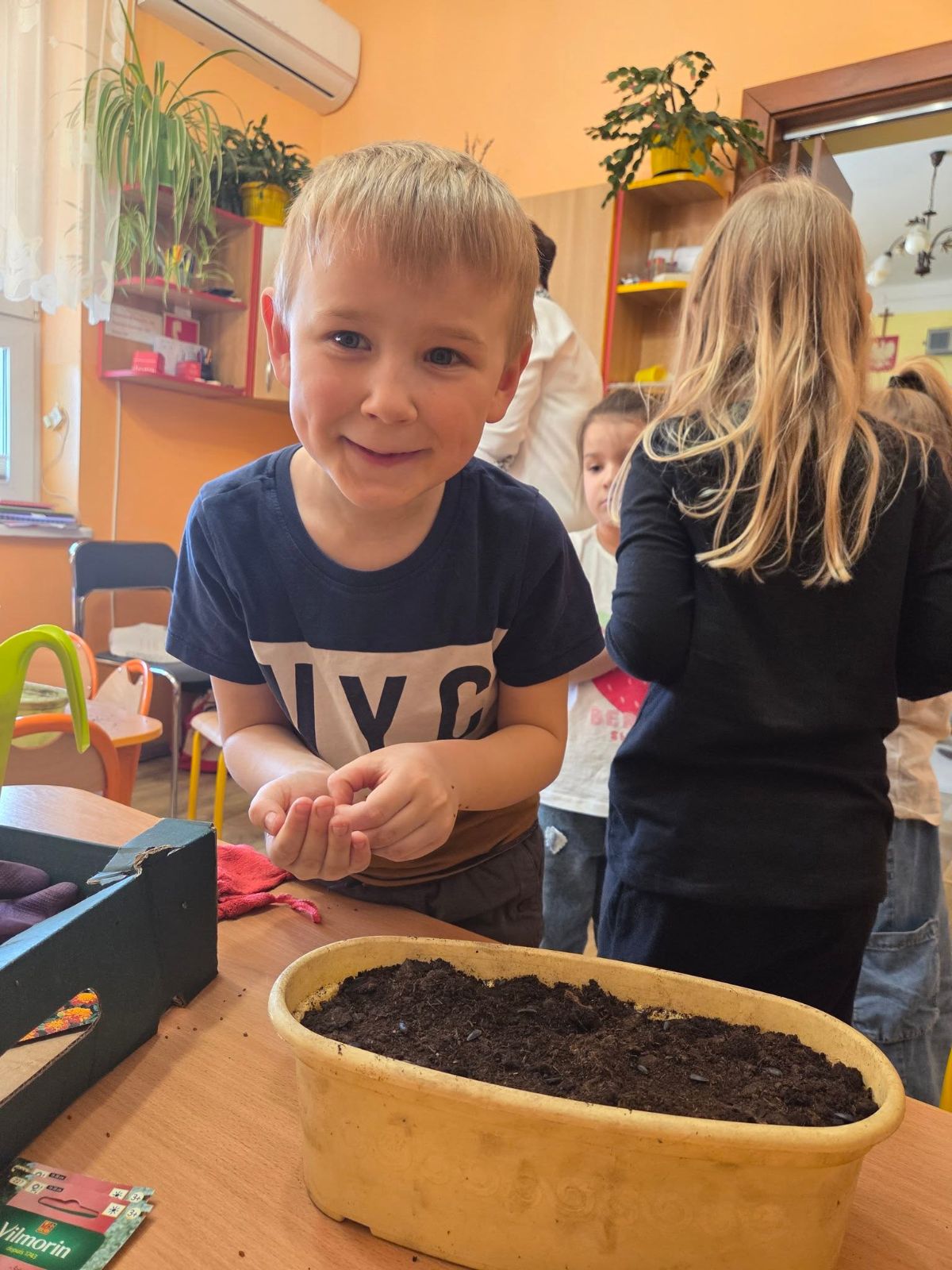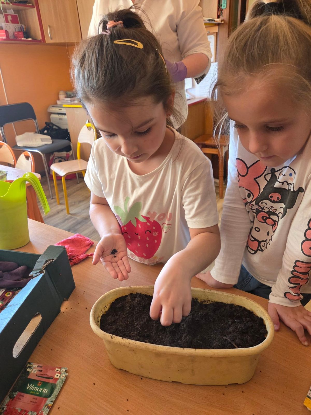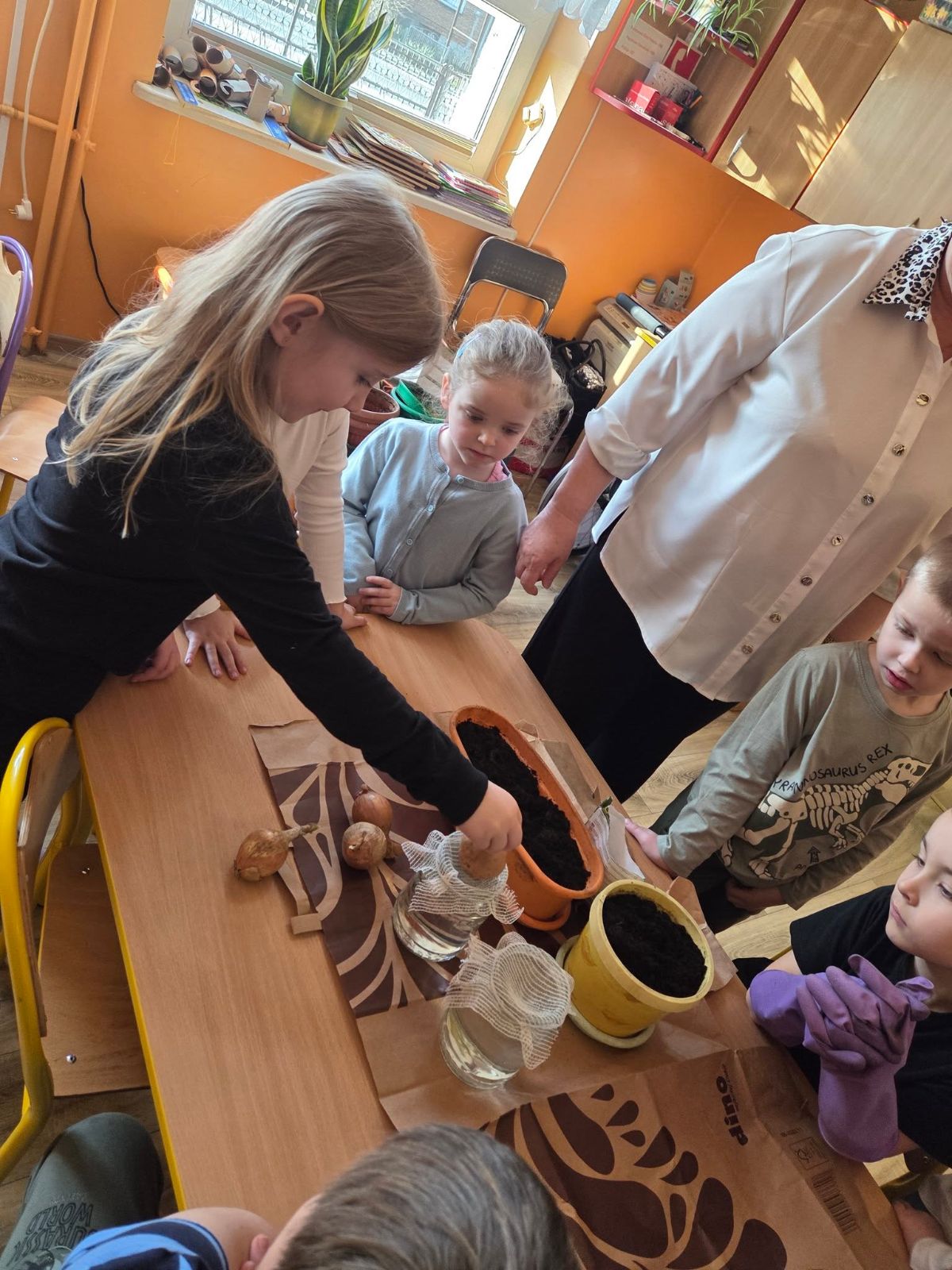 Przedszkolaki z Borzęcina Dolnego rozpoczęły wiosenne przebudzenie w kąciku przyrody. Zainspirowane opowiadaniem Doroty Niewoli ,,Skrawek wiosny w kąciku przyrody” - sadziły kwiaty cebulowe, dymkę na szczypiorek, fasolę i siały słonecznik oraz rzeżuchę.
