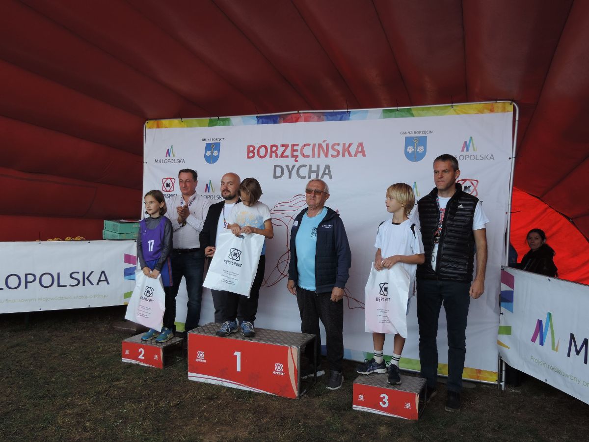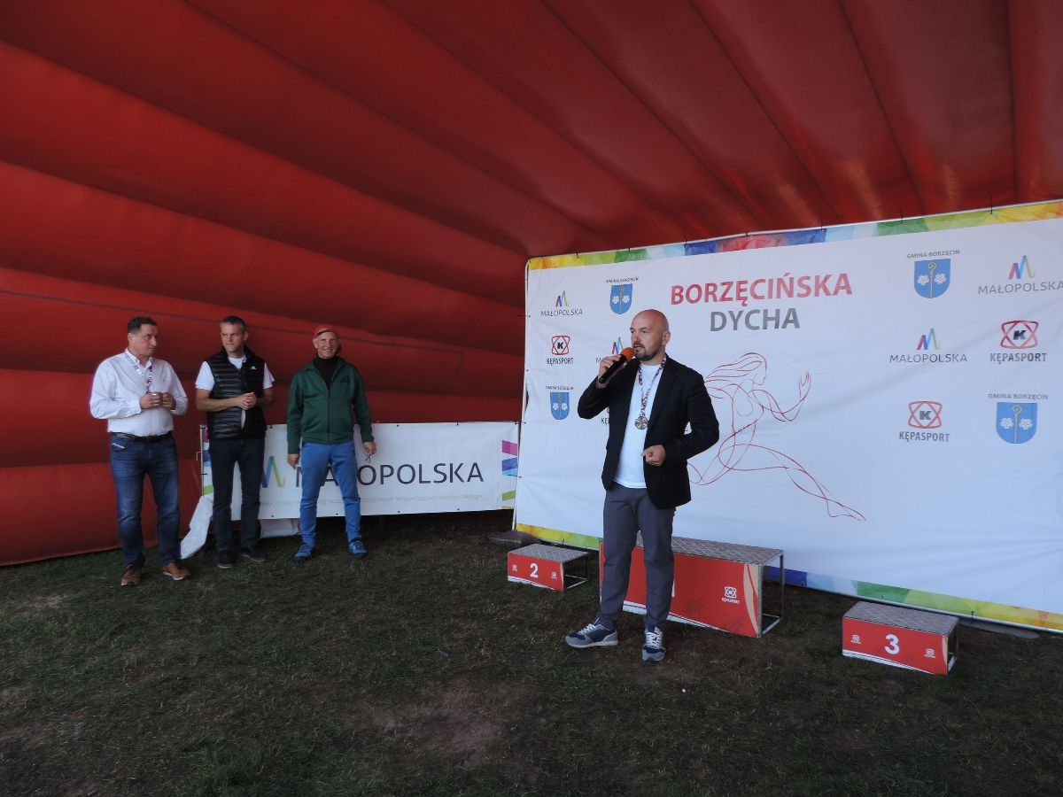 Wręczenia nagród poprzedziły podziękowania. Leszek Kępiński, prezes Stowarzyszenia Kępa Sport, podsumował dekadę organizacji biegu z wdzięcznością wobec wszystkich zaangażowanych: – Dziesięć lat to kawał historii. Chciałbym serdecznie podziękować wszystkim, którzy przez ten czas wspierali nas w organizacji Borzęcińskiej Dychy. Szczególne wyrazy wdzięczności kieruję do Gminy Borzęcin na ręce Wójta Gminy, pana Pawła Kułaka, a także do dyrektora GOK, Piotra Kani, który w tym roku nie tylko współorganizował, ale również stanął na starcie. Dziękujemy druhom z OSP Bielcza i OSP Łęki za nieocenioną pomoc. To dzięki takiej współpracy możemy mówić o sukcesie każdej edycji.