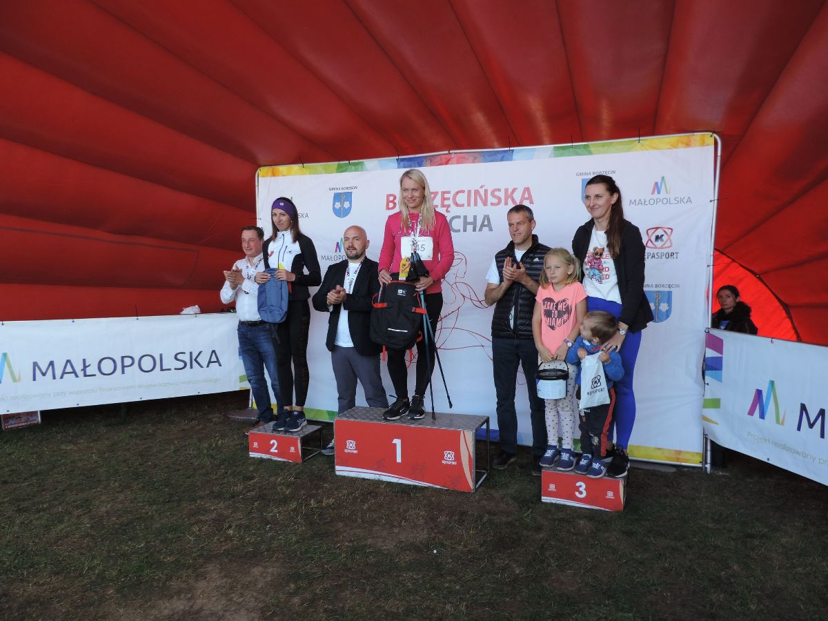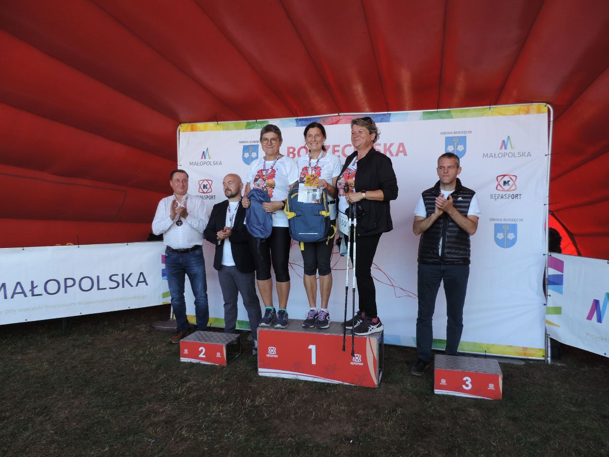 W marszu Nordic Walking najszybszy był Piotr Ordzowiały z Osielca (24:31). Drugie miejsce zajął Henryk Kędzia z Tarnobrzega (25:27), a trzecie – Jolanta Wiktor ze Straszęcina z czasem 26:33. W tej rywalizacji startowali także reprezentanci gminy Borzęcin: 11.Piotr Kania – GOK Borzęcin (29:16) oraz 19. Katarzyna Żurek – Przyborów (33:16).