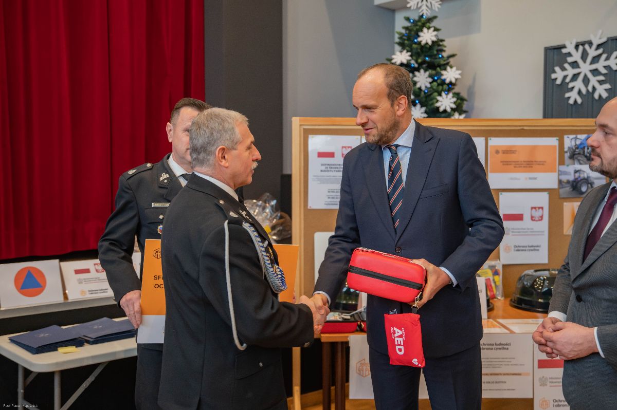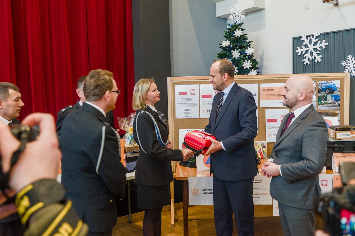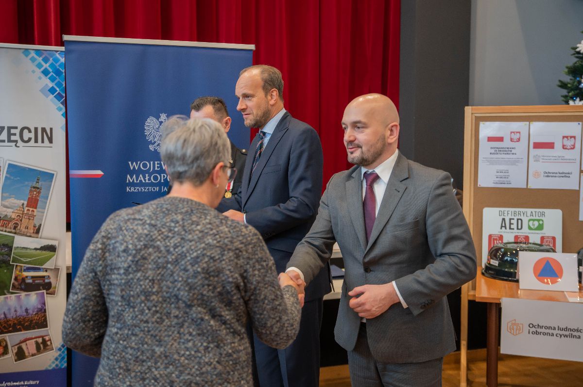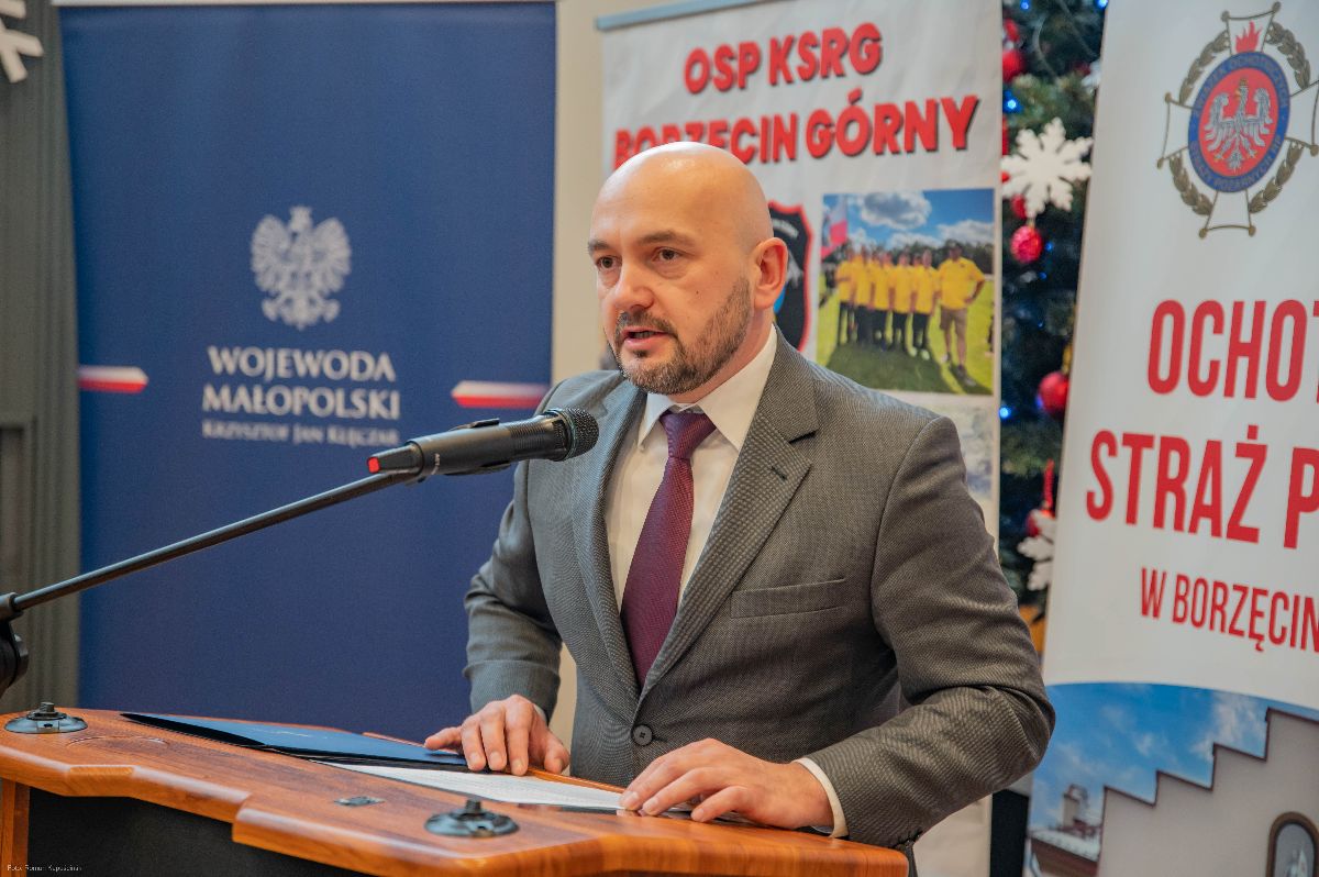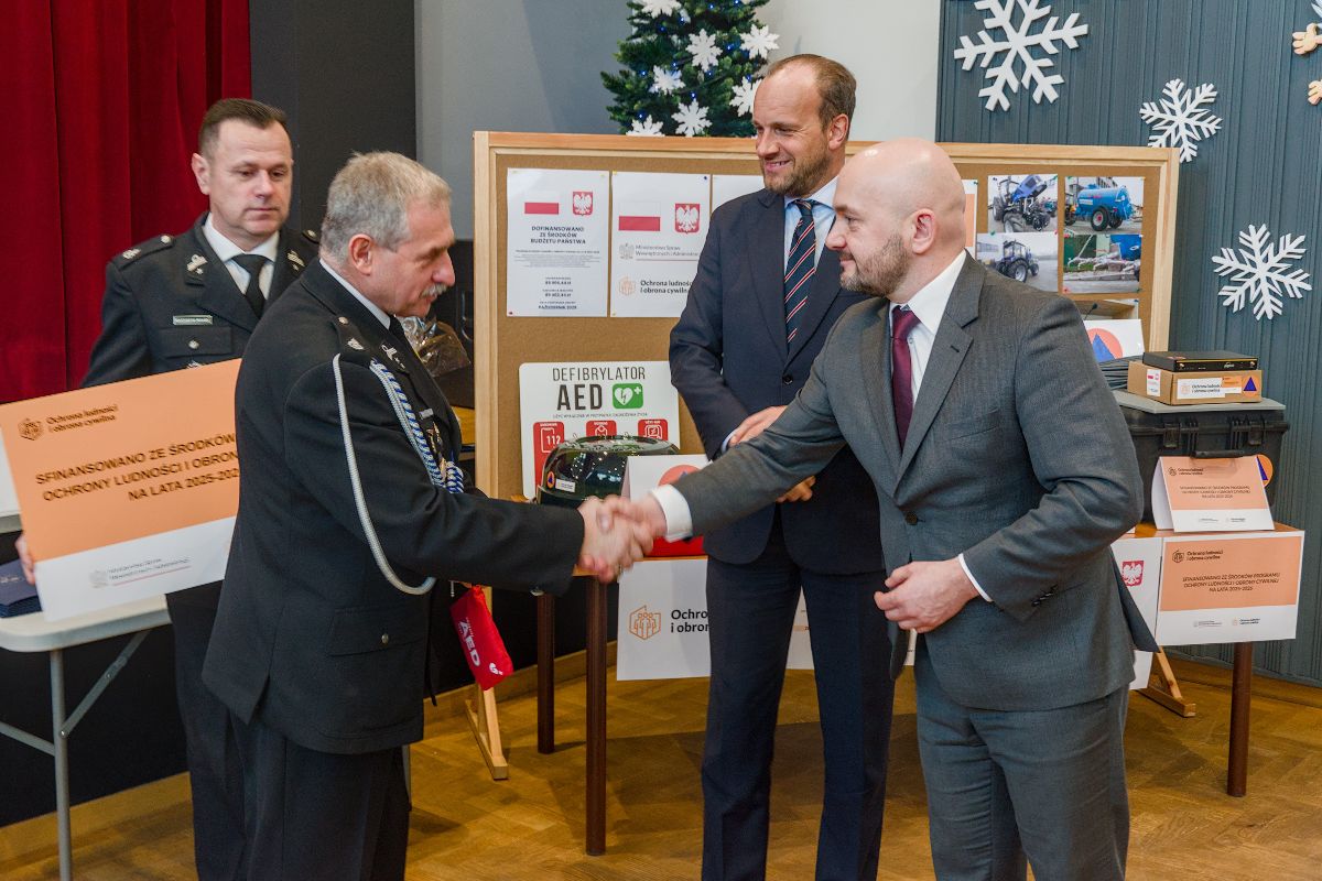 Ta okoliczność była doskonałą okazją by wyrazić szczere podziękowania osobom, bez których realizacja tego przedsięwzięcia nie byłaby możliwa. Słowa szczególnego uznania skierowane zostały do Pana Krzysztofa Klęczara, Wojewody Małopolskiego oraz Pana Ryszarda Śmiałka - Wicewojewody Małopolskiego za okazane zaufanie oraz aktywne zaangażowanie w proces pozyskiwania środków w ramach programu Ochrony Ludności i Obrony Cywilnej na lata 2025–2026. Przekazanie sprzętu i pojazdów było najlepszym dowodem na to, że odpowiedzialne decyzje, partnerska współpraca oraz wspólne działanie administracji rządowej i samorządowej przynoszą wymierne i trwałe efekty, co przełożyło się na wzmocnienie potencjału służb odpowiedzialnych za bezpieczeństwo mieszkańców. Dzięki dobrej współpracy oraz zrozumieniu znaczenia nowoczesnego wyposażenia w działaniach ratowniczych i kryzysowych, możliwe było doposażenie jednostek w sprzęt, który zwiększy skuteczność działań, poprawi bezpieczeństwo ratowników oraz pozwoli szybciej i sprawniej reagować na zagrożenia.