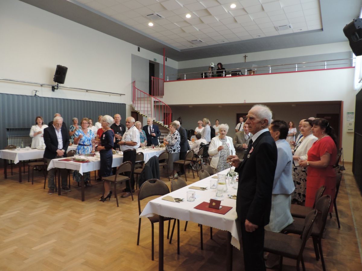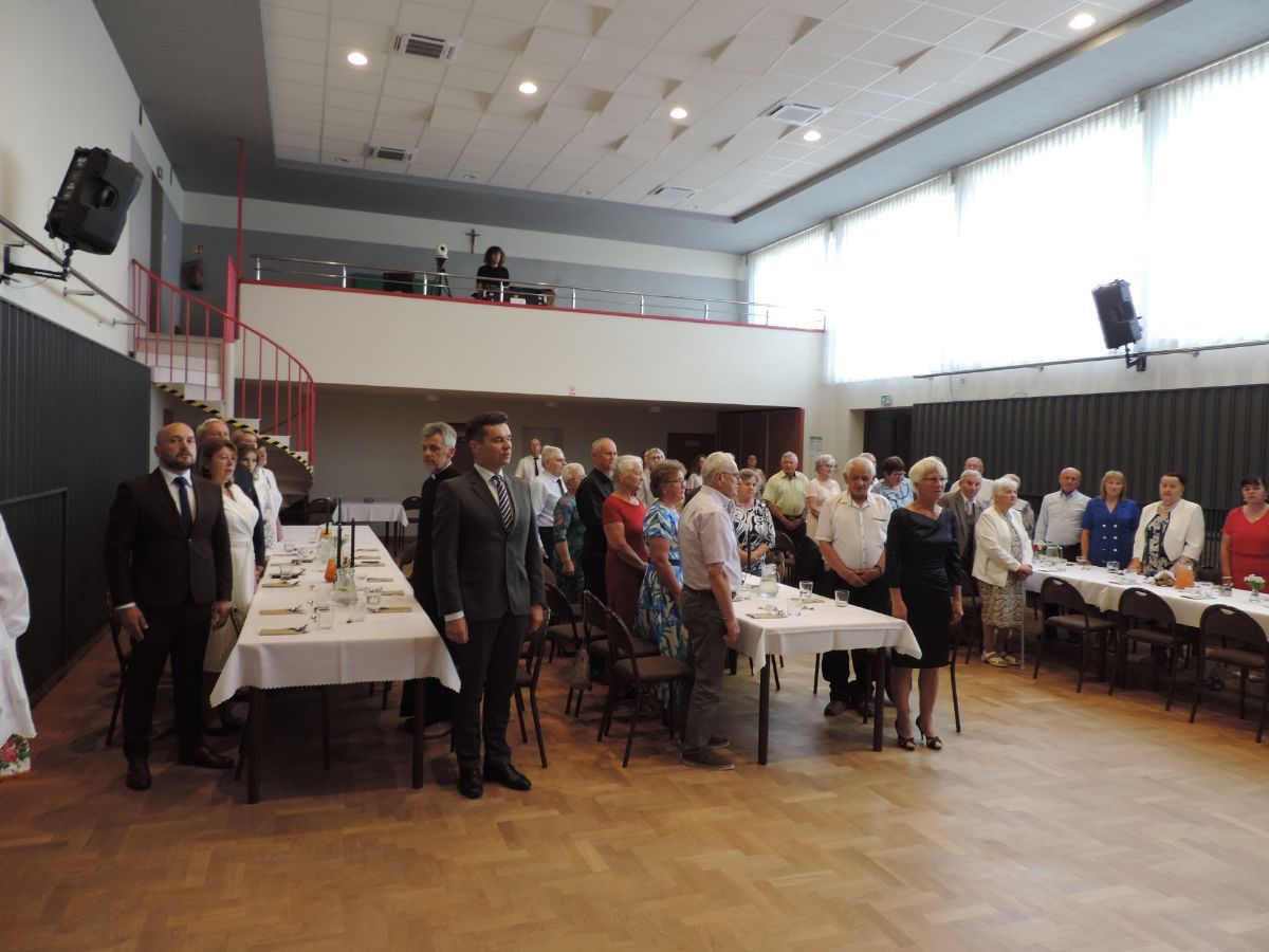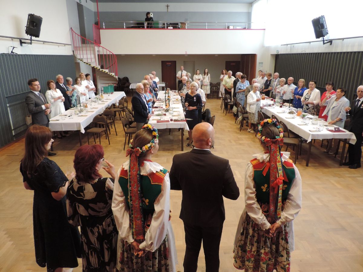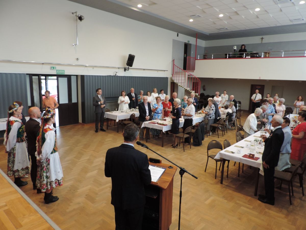 Wójt Gminy Borzęcin złożył Jubilatom serdeczne życzenia, wznosząc uroczysty toast za ich zdrowie, pomyślność i kolejne wspólne lata. Po części oficjalnej wykonano pamiątkowe zdjęcie, a uroczystość kontynuowano podczas wspólnego obiadu i programu artystycznego.