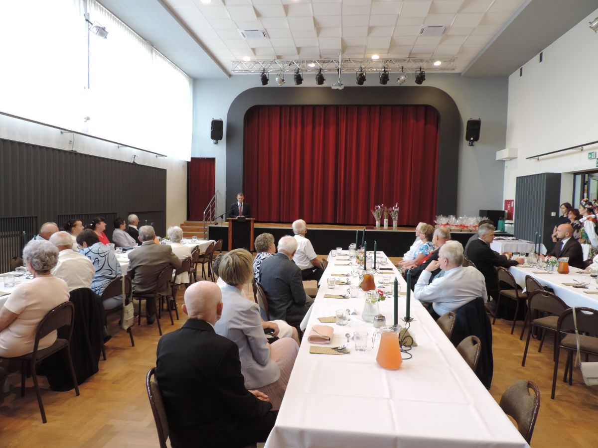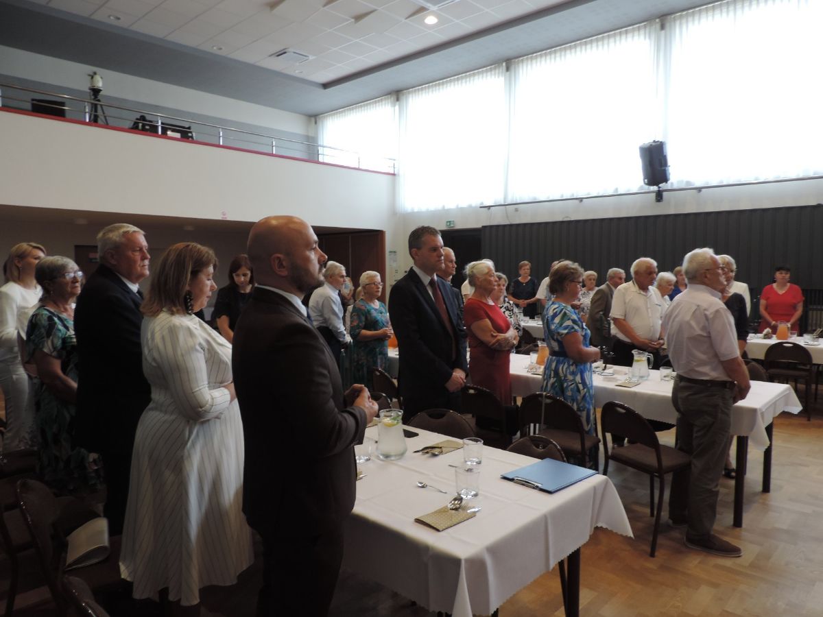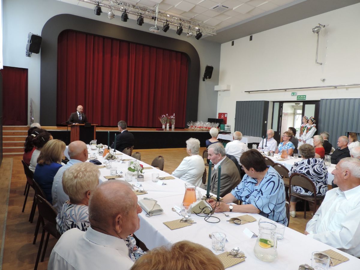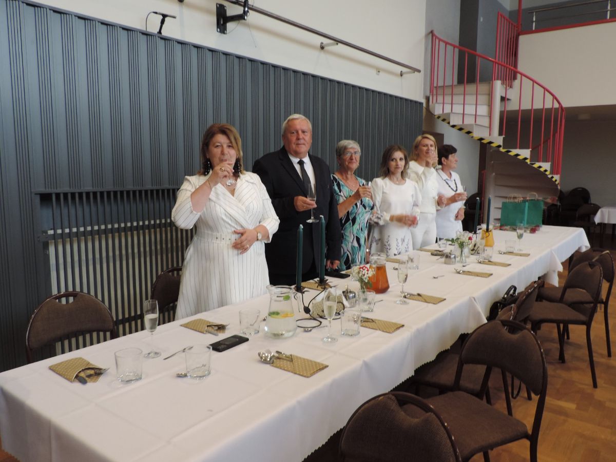 Wójt Gminy Borzęcin złożył Jubilatom serdeczne życzenia, wznosząc uroczysty toast za ich zdrowie, pomyślność i kolejne wspólne lata. Po części oficjalnej wykonano pamiątkowe zdjęcie, a uroczystość kontynuowano podczas wspólnego obiadu i programu artystycznego.