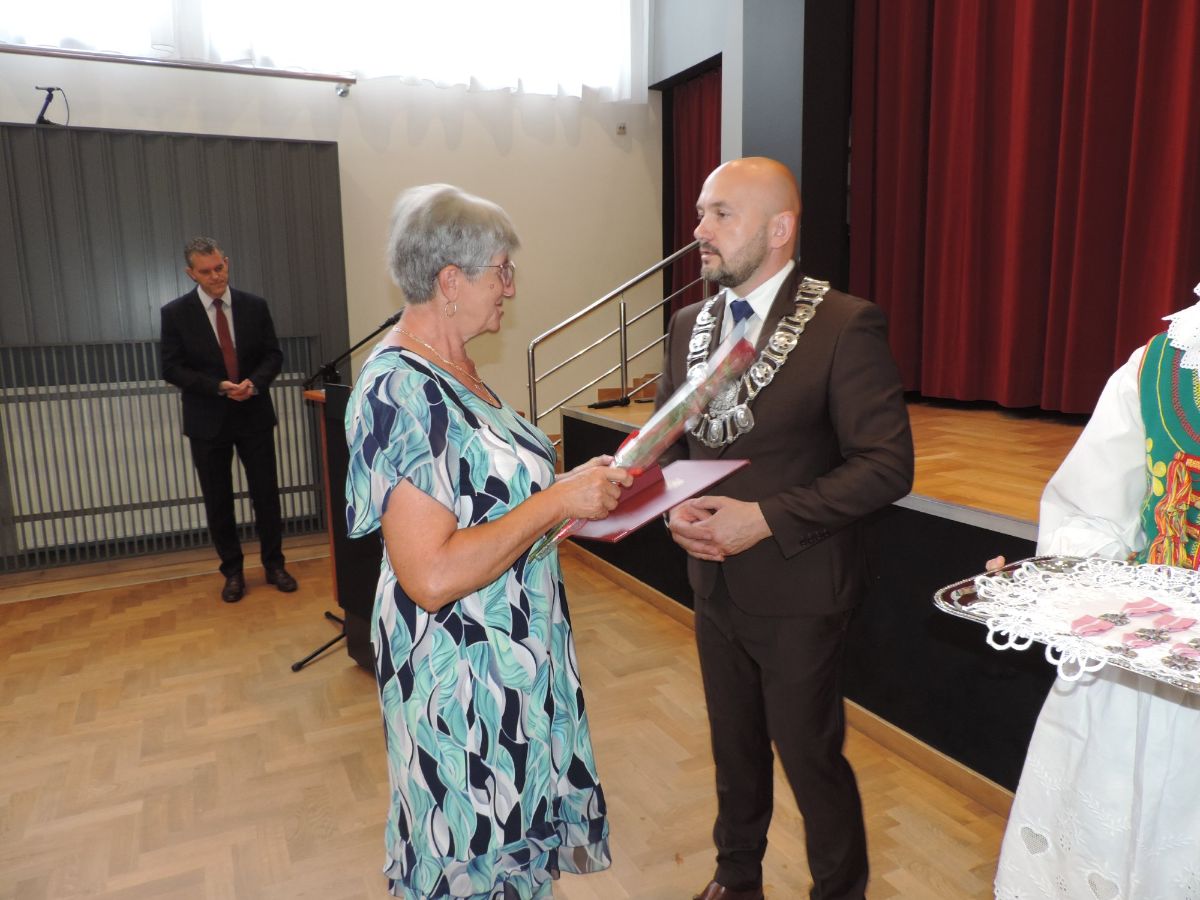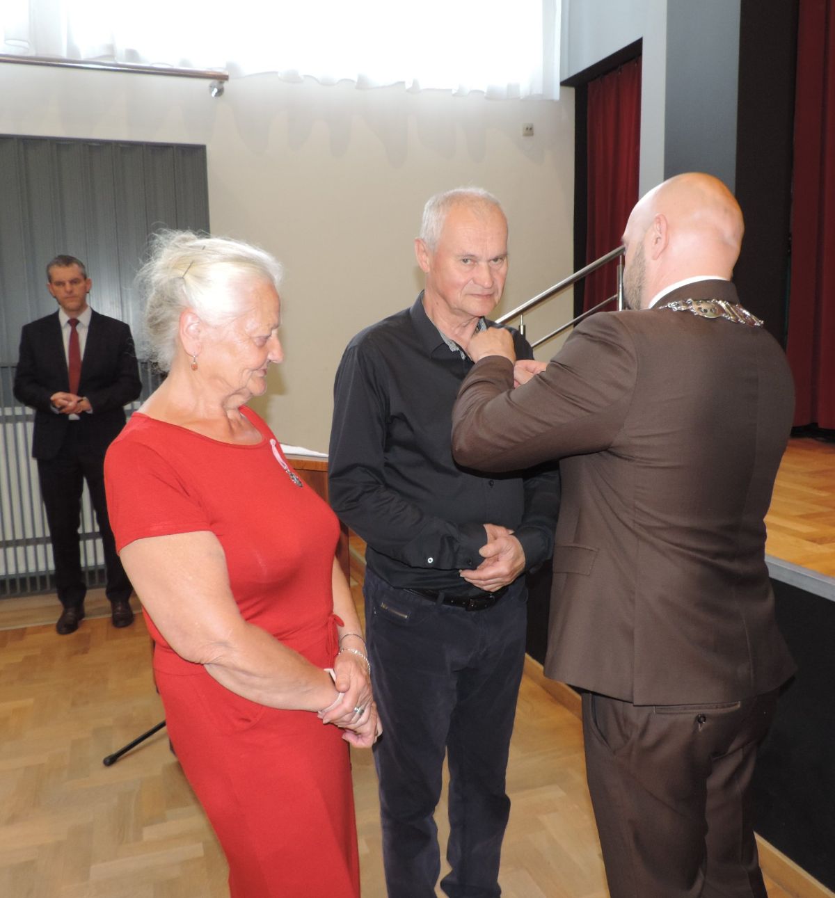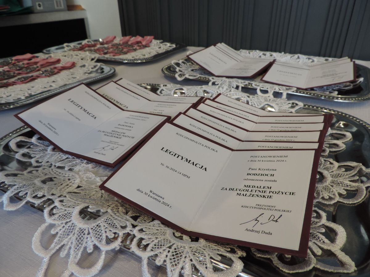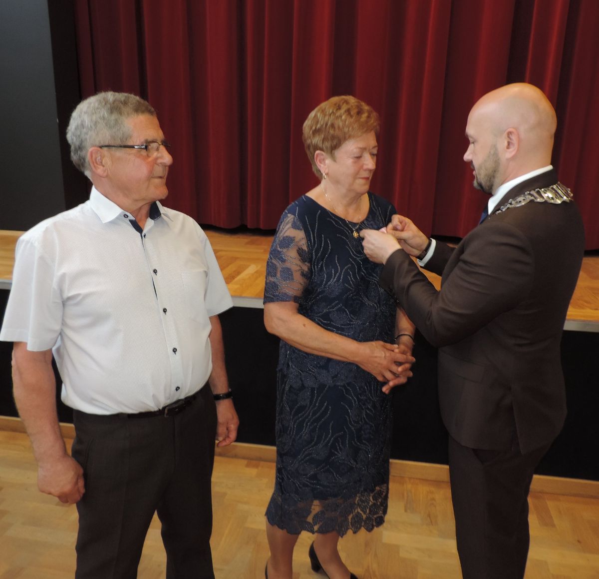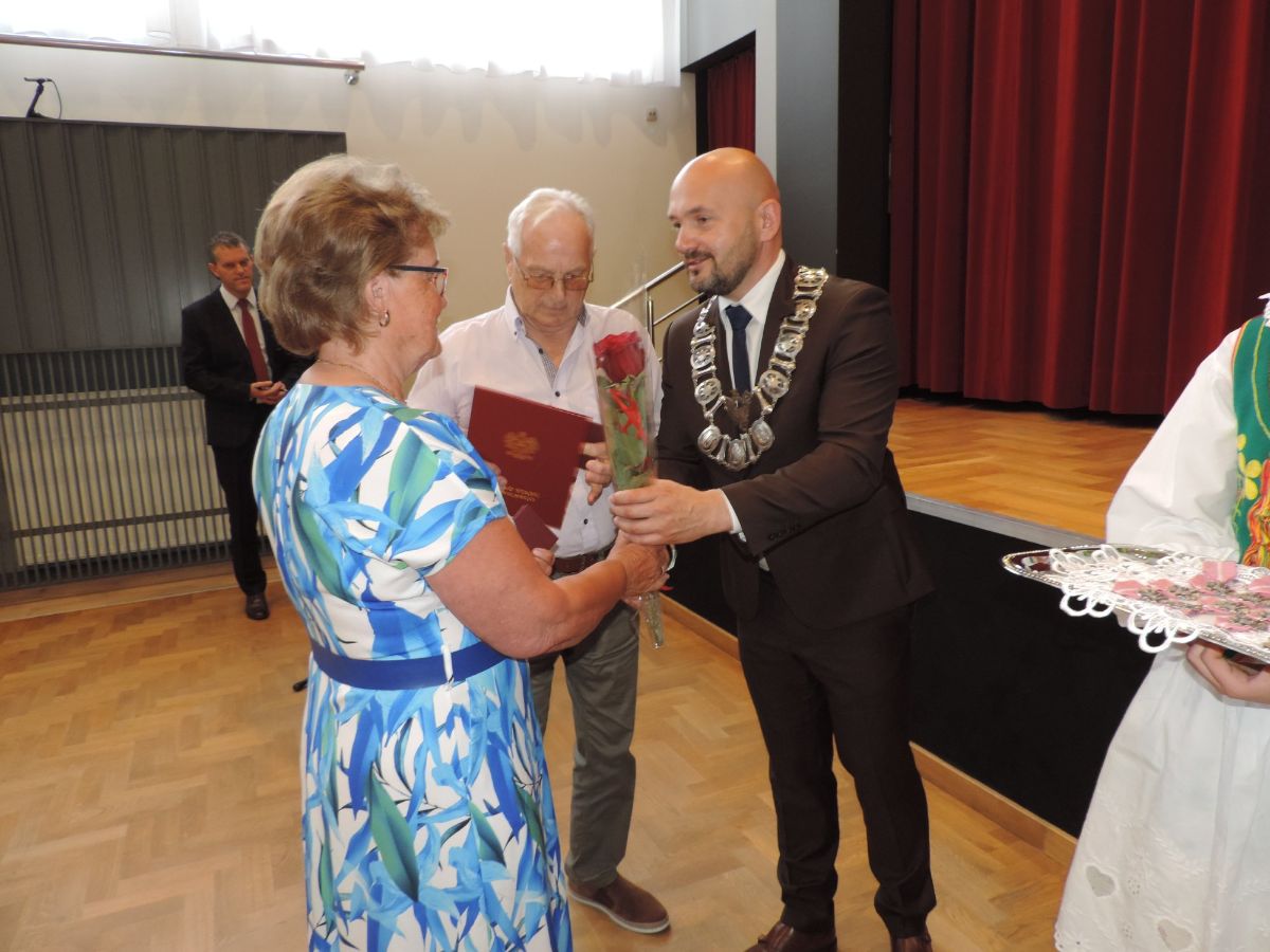 Następnie, podczas oficjalnej części wydarzenia, wręczono Medale za Długoletnie Pożycie Małżeńskie – odznaczenia przyznane przez Prezydenta Rzeczypospolitej Polskiej Andrzeja Dudę na wniosek Wójta Gminy Borzęcin.