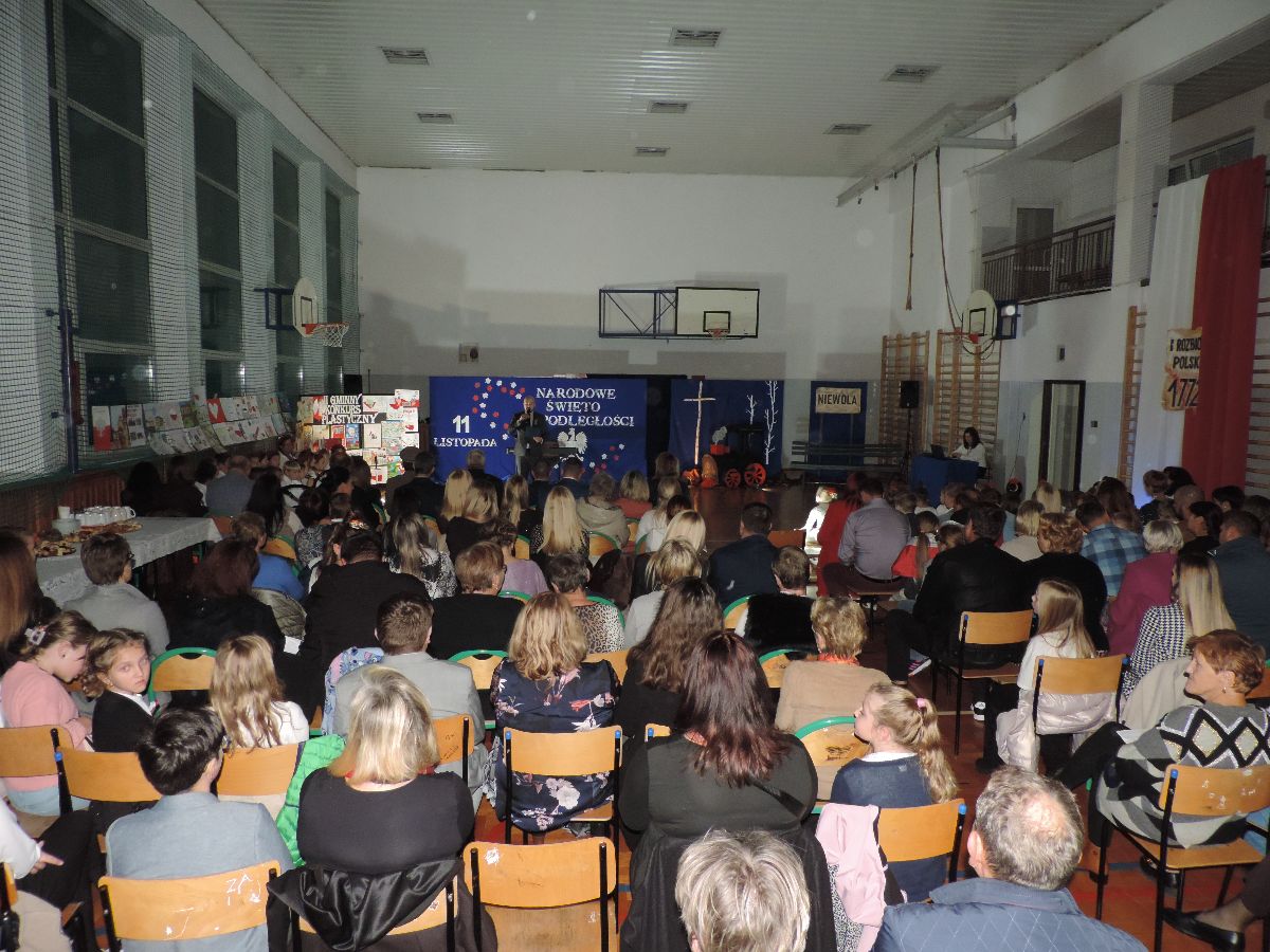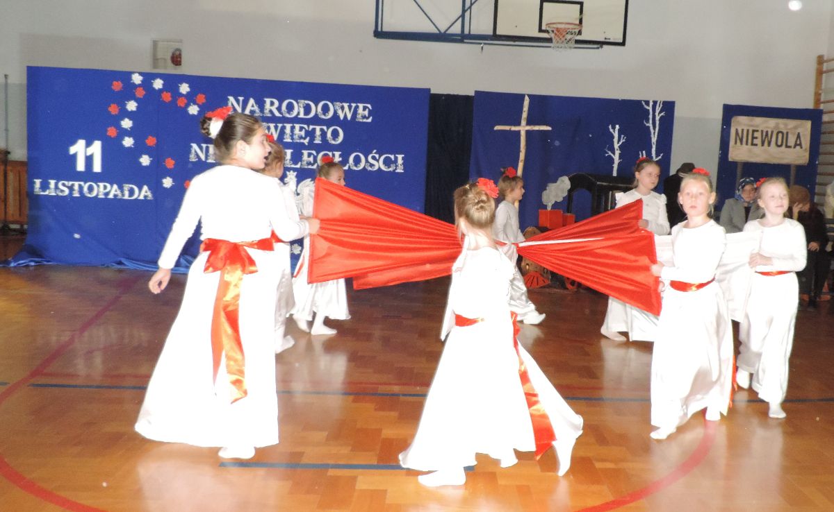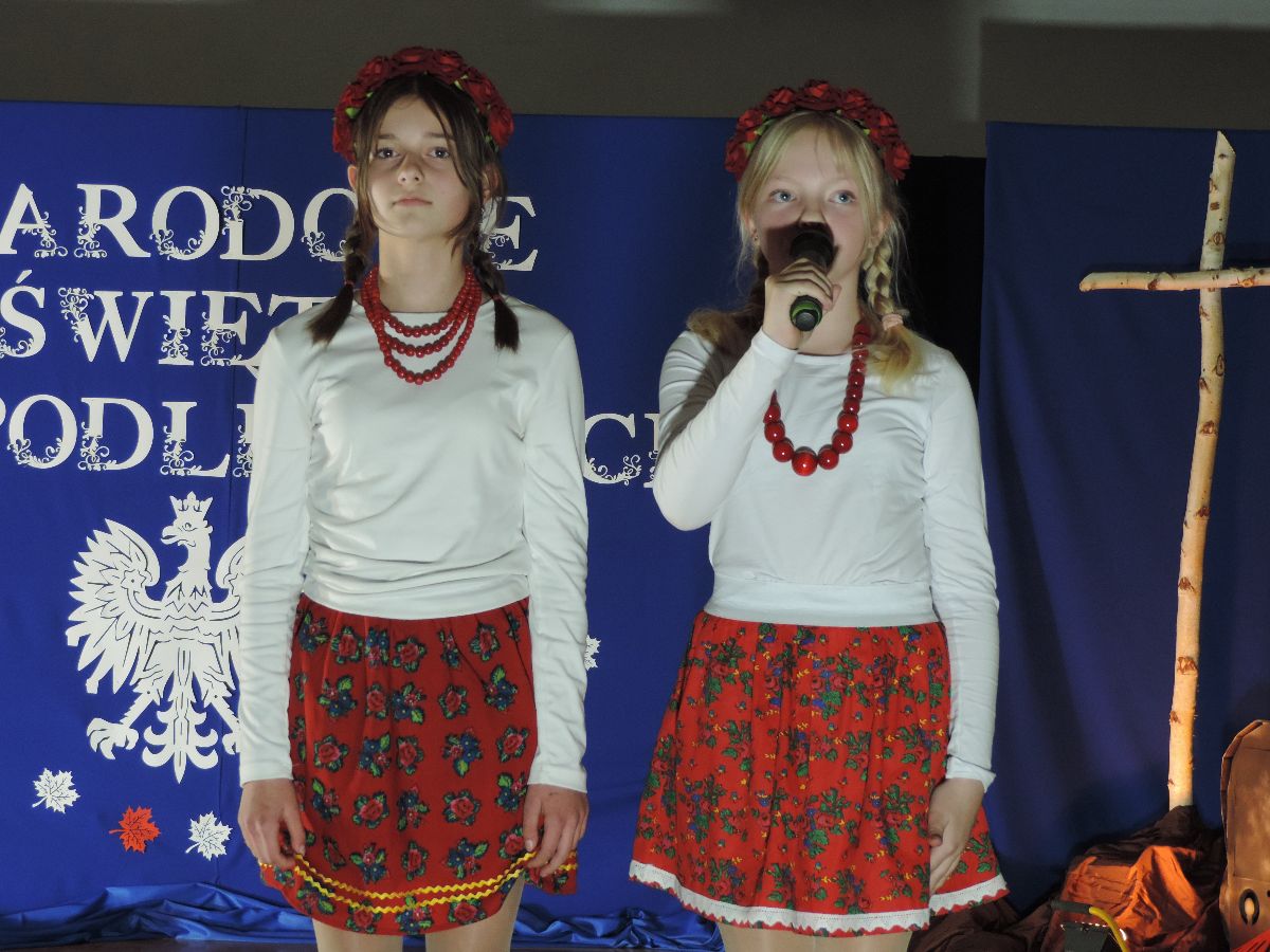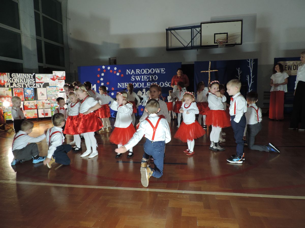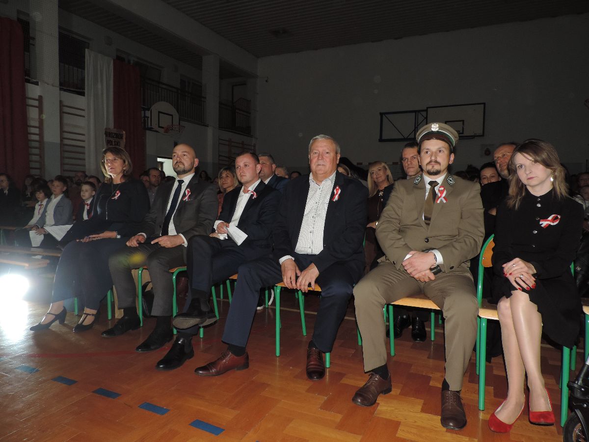 Na zakończenie wszyscy obecni zaśpiewali kilka pieśni patriotycznych, a następnie zostali ugoszczeni słodkim poczęstunkiem, który przygotowali rodzice z poszczególnych klas.
