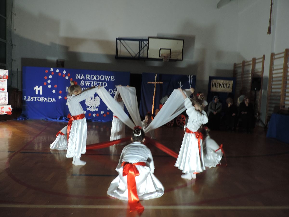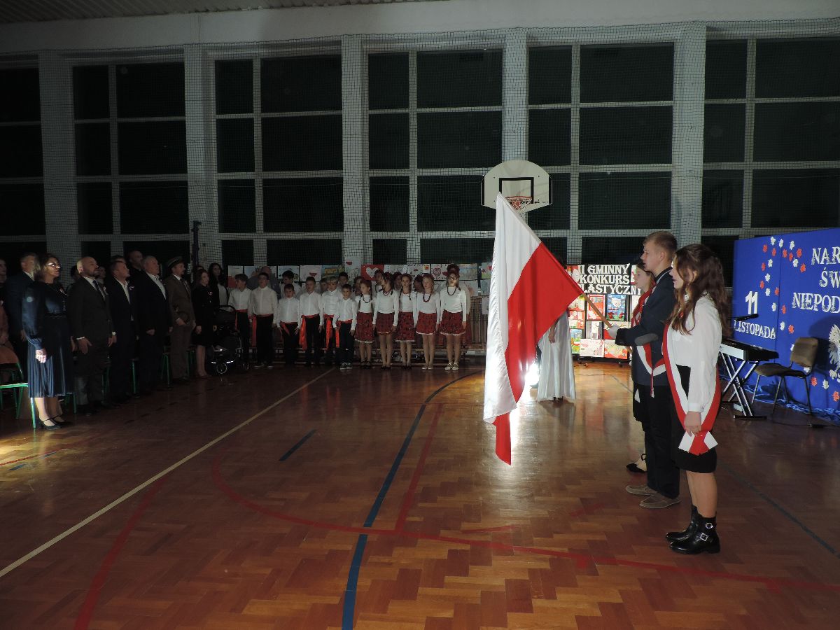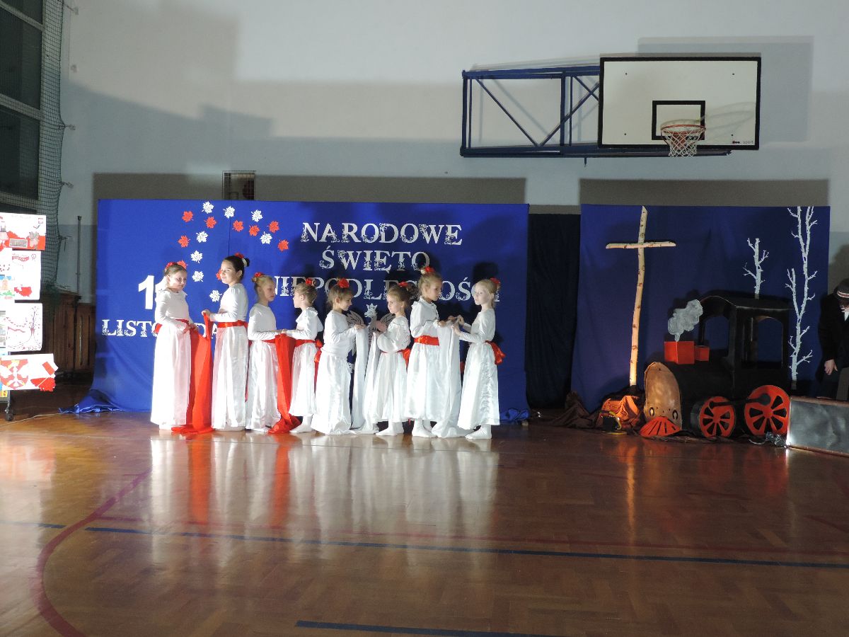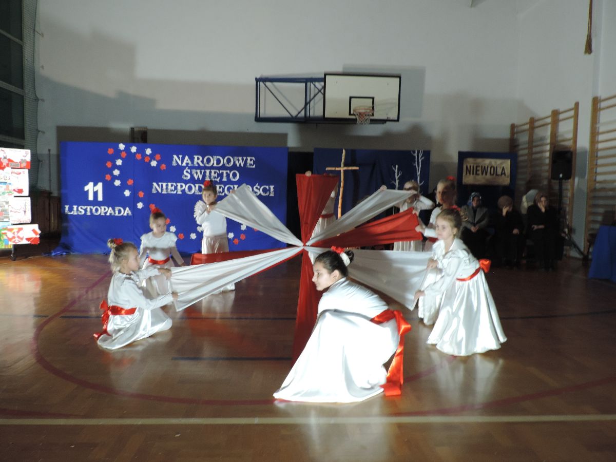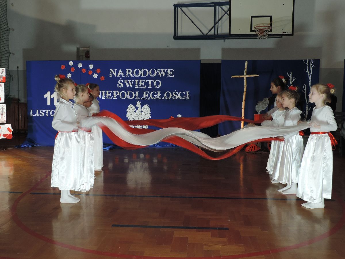 Na zakończenie wszyscy obecni zaśpiewali kilka pieśni patriotycznych, a następnie zostali ugoszczeni słodkim poczęstunkiem, który przygotowali rodzice z poszczególnych klas.