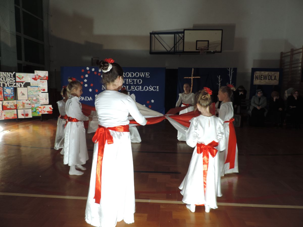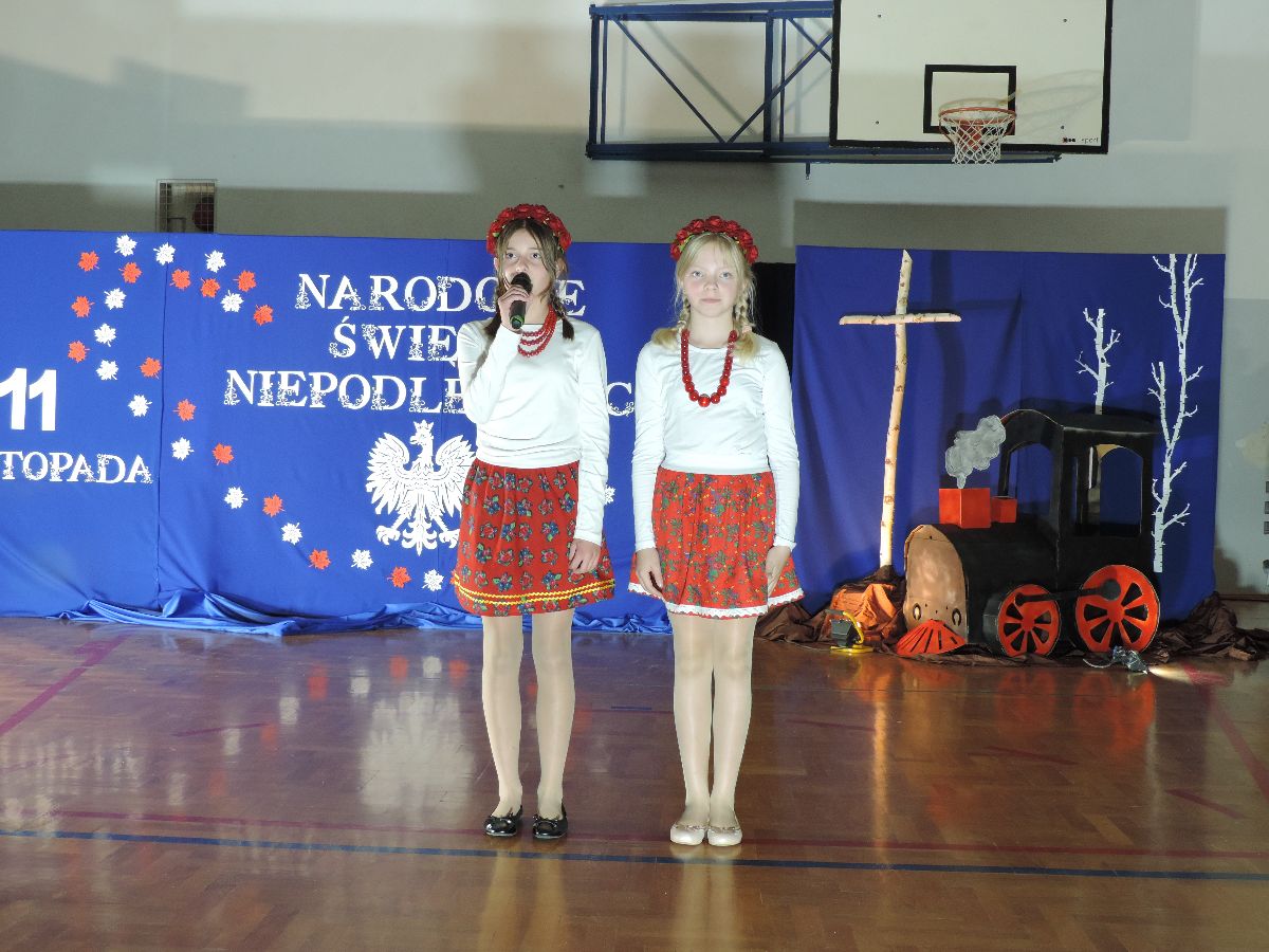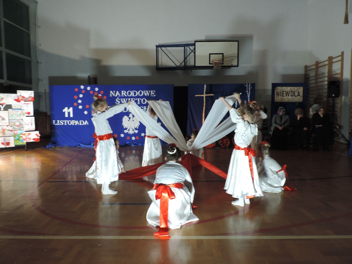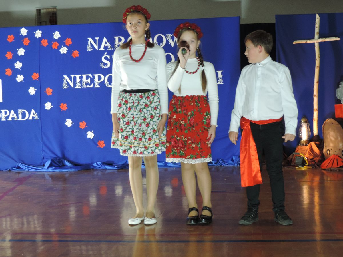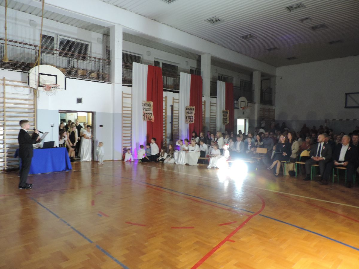Na zakończenie wszyscy obecni zaśpiewali kilka pieśni patriotycznych, a następnie zostali ugoszczeni słodkim poczęstunkiem, który przygotowali rodzice z poszczególnych klas.