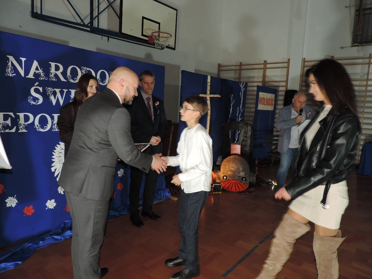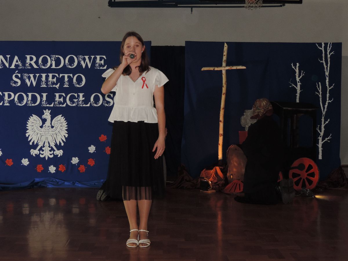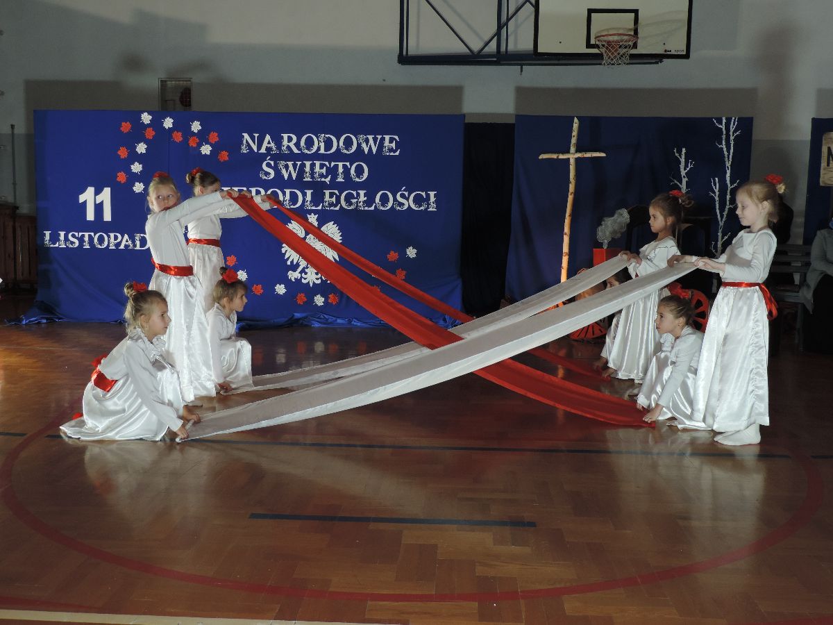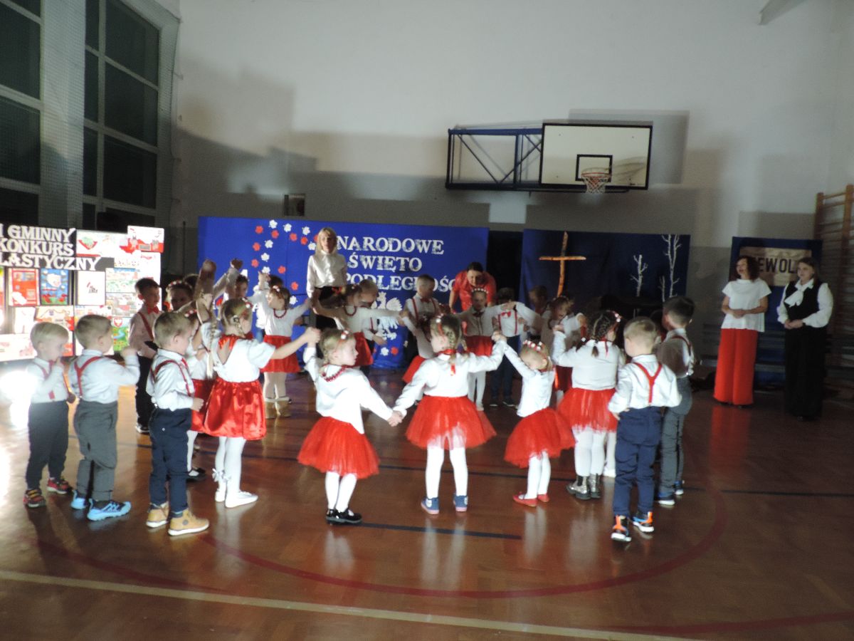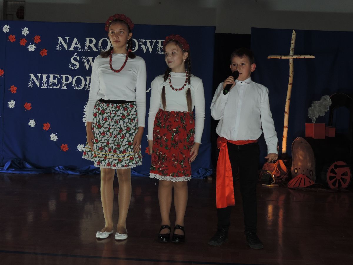 Na zakończenie wszyscy obecni zaśpiewali kilka pieśni patriotycznych, a następnie zostali ugoszczeni słodkim poczęstunkiem, który przygotowali rodzice z poszczególnych klas.
