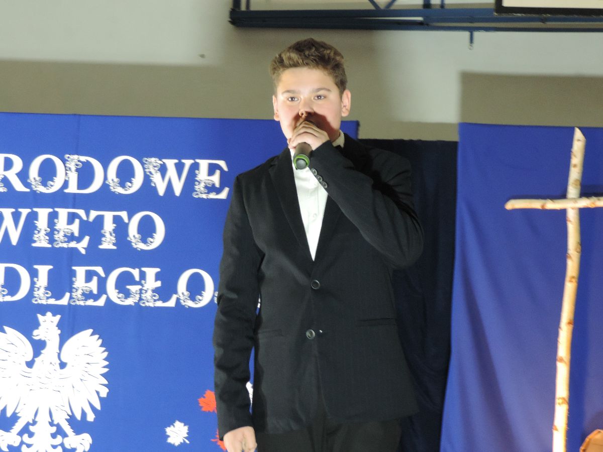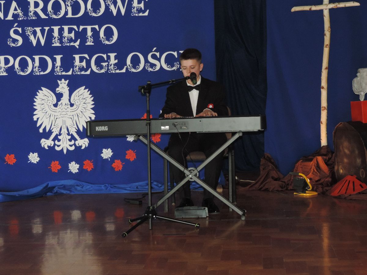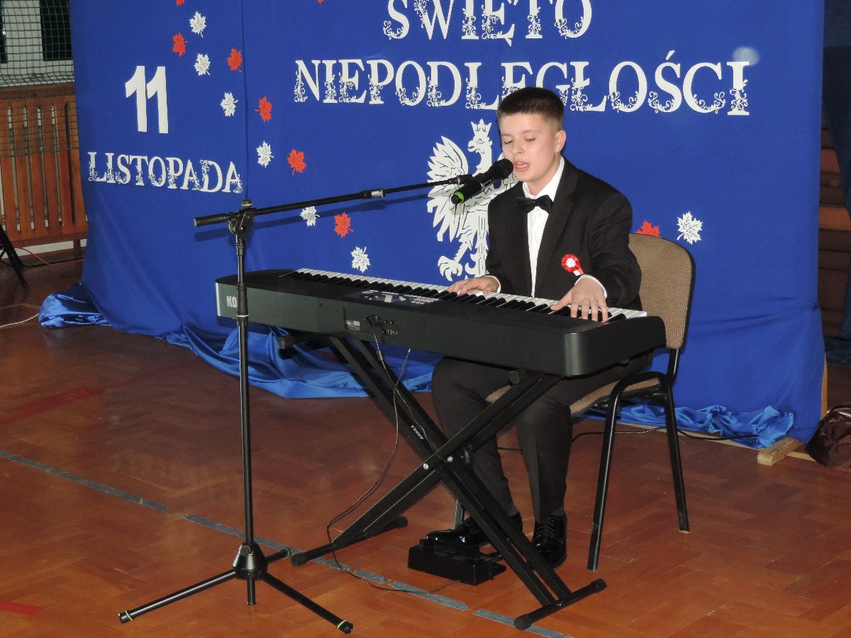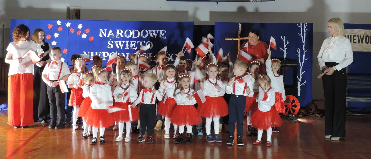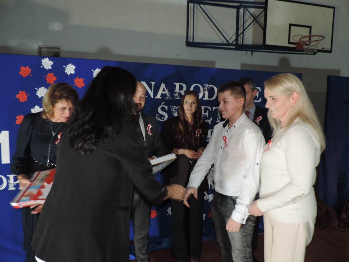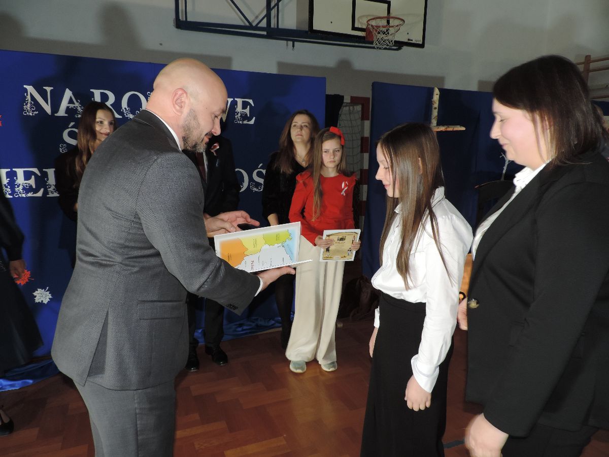 Na zakończenie wszyscy obecni zaśpiewali kilka pieśni patriotycznych, a następnie zostali ugoszczeni słodkim poczęstunkiem, który przygotowali rodzice z poszczególnych klas.
