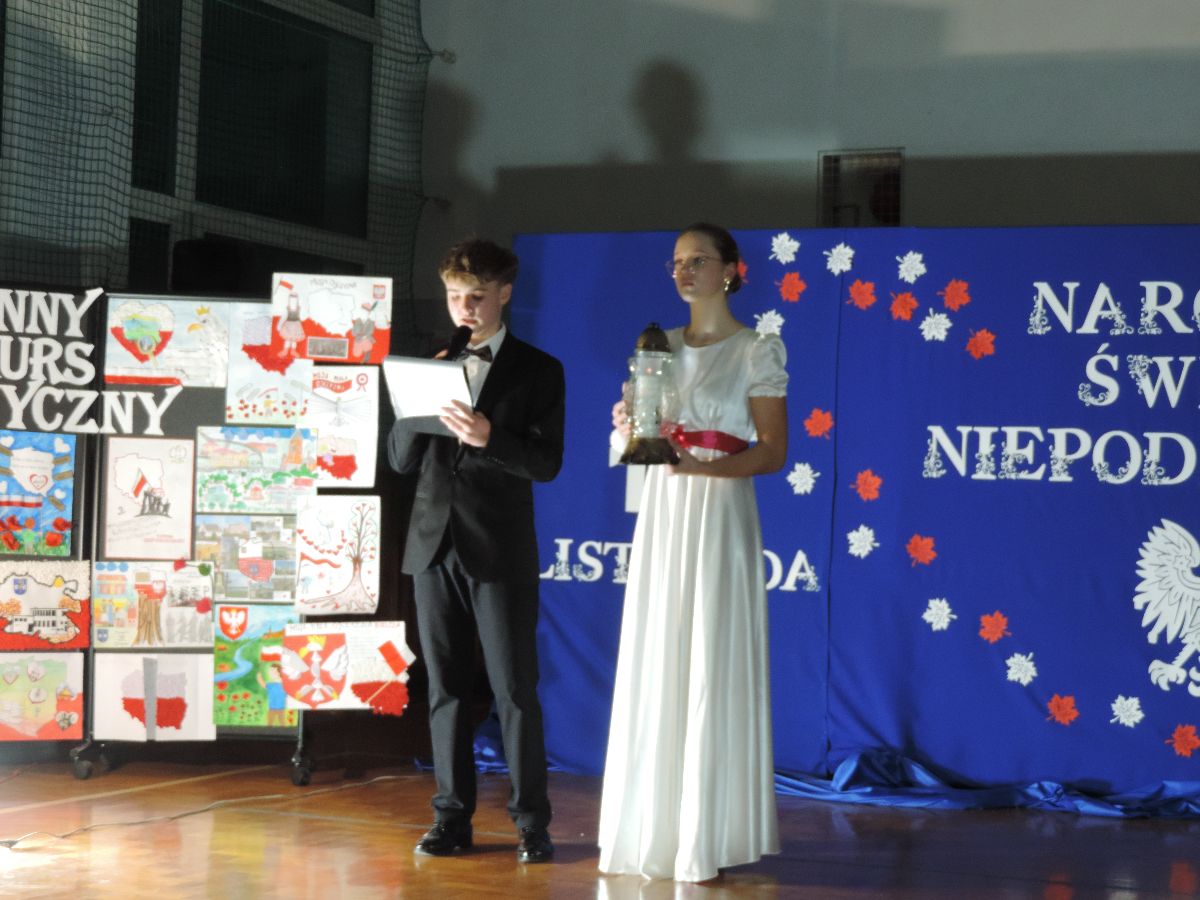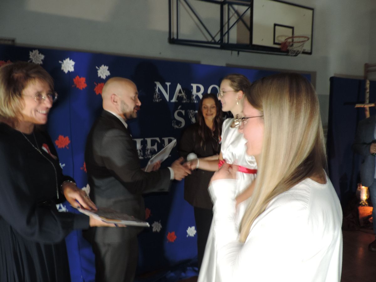 Zaproszonych gości powitała dyrektor Agnieszka Pabian, która w swoim przemówieniu podkreśliła, że patriotyzm to nie tylko święta i uroczystości. To także codzienne, dobre zachowanie – szacunek do innych, dbanie o naszą szkołę, miasto i kraj.