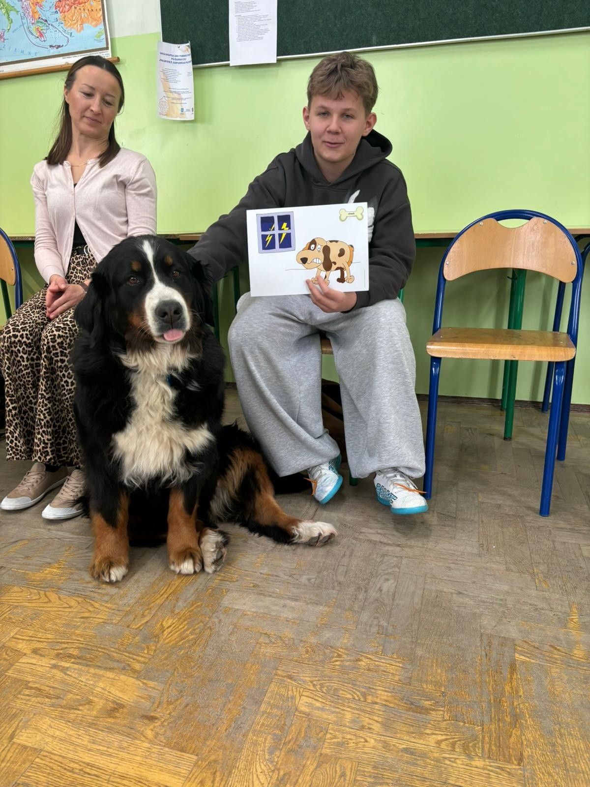 Zajęcia poprowadziła Pani Anna Kozłowska – pedagog, dogoterapeuta oraz behawiorysta, reprezentująca inicjatywę „Psie gadu gadu”. Prowadząca w przystępny i angażujący sposób przekazała młodzieży wiedzę z zakresu profilaktyki uzależnień, a także przybliżyła specyfikę pracy dogoterapeuty.