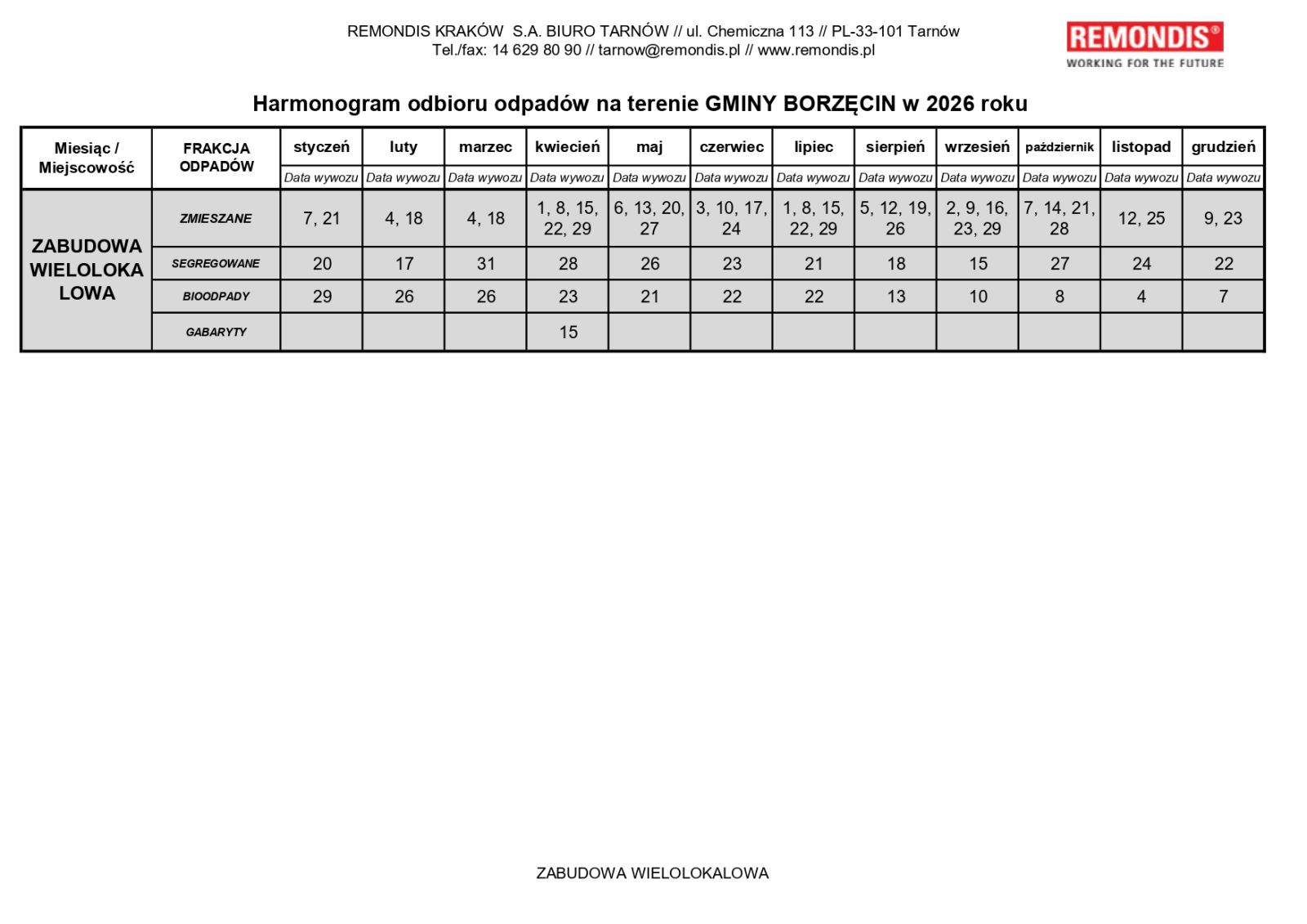 Do pobrania - Harmonogram wywozu odpadów w okresie styczeń - grudzień 2026 (PDF, 178.25 KB)