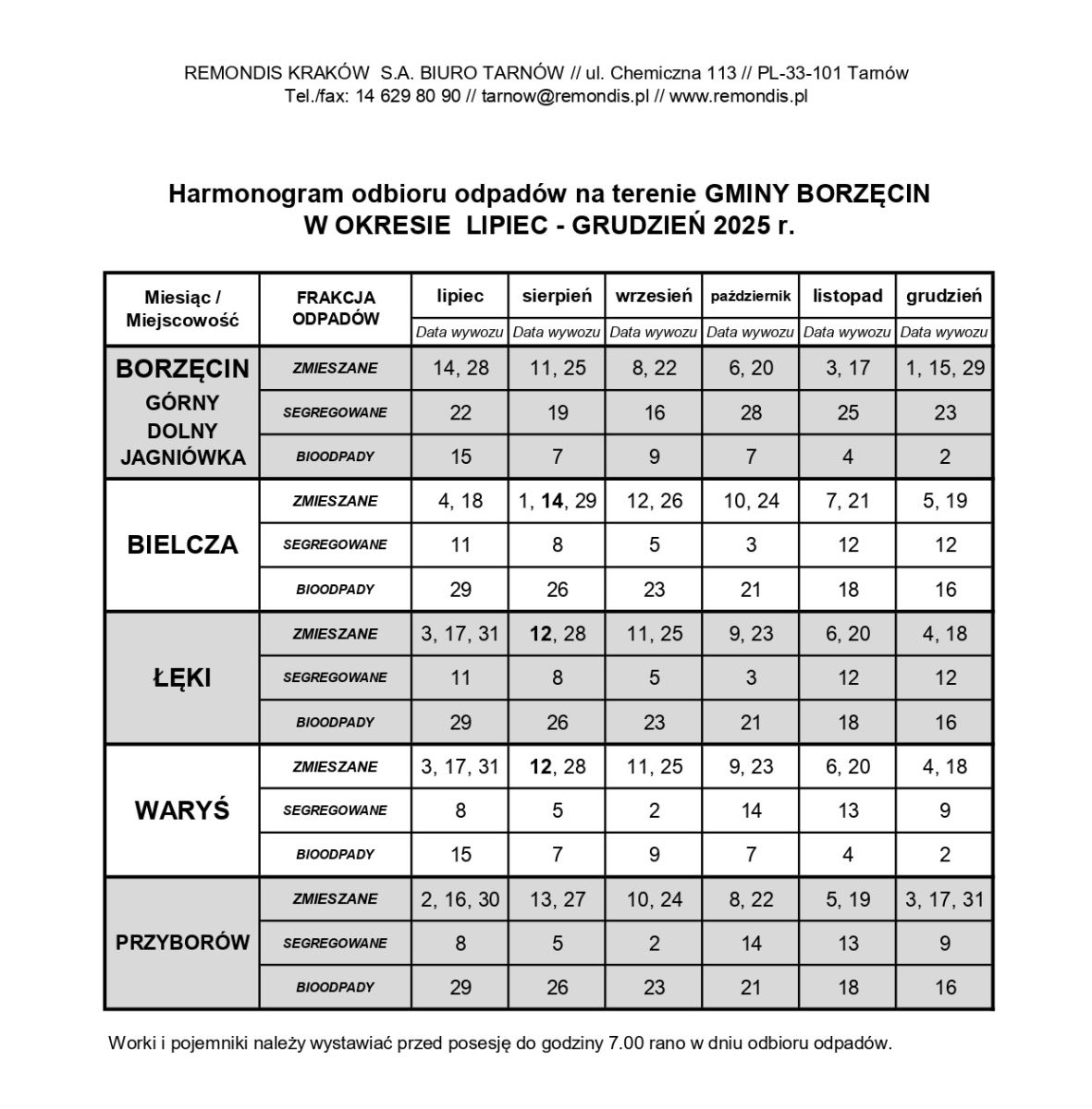 Do pobrania - Harmonogram wywozu odpadów w okresie lipiec - grudzień 2025